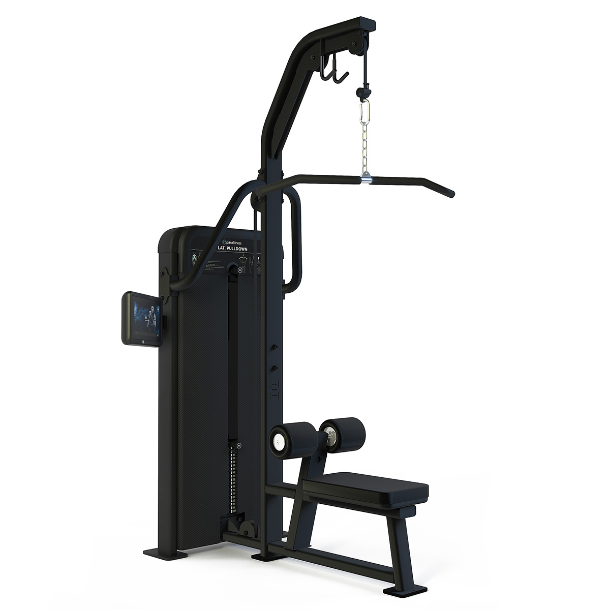 Premium Lat Pulldown Makinesi 1x80kg Ağırlık Yığını Kulesi, 10.1″ (Cirrus V4) Dokunmatik Ekran Konsolu ile, Kum Siyahı Renk ve Siyah Döşeme (NFC Uyumlu) (110V/220V)